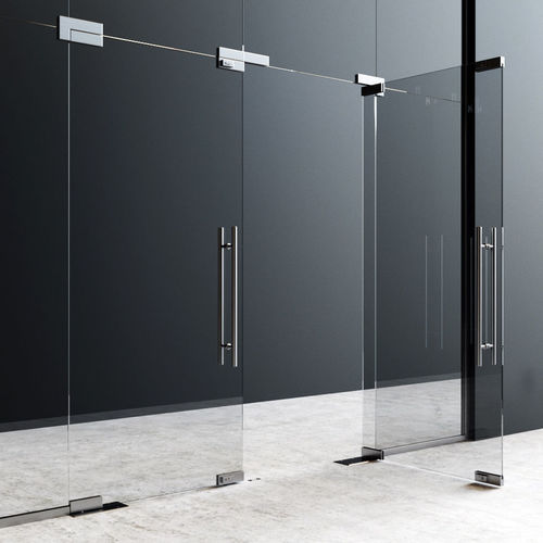 Patch Fitting Doors are frameless glass door systems that use high-quality stainless steel patch fittings to hold and support the glass panels without the need for bulky frames. This creates a sleek, elegant, and modern appearance while ensuring structural stability and smooth operation. The fittings securely connect the glass to floor springs, pivots, and handles for reliable performance.